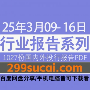 2025年3月09日-16日国内外各行业机构投资研究报告PDF资源网盘合集,包含1027份国内券商报告/国际投行报告/投资研报/行业报告…等内容