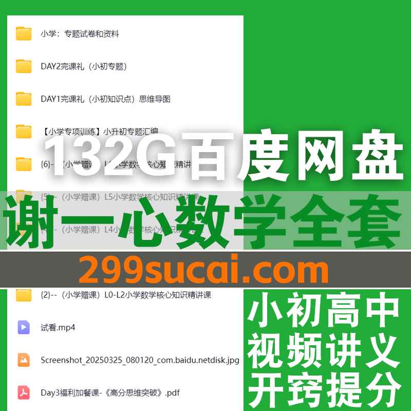 132G全套谢一心数学视频课程+电子版讲义网盘资源合集,包含小学数学开窍提分训练营/高中深度思考课/逻辑思维高效提升…等