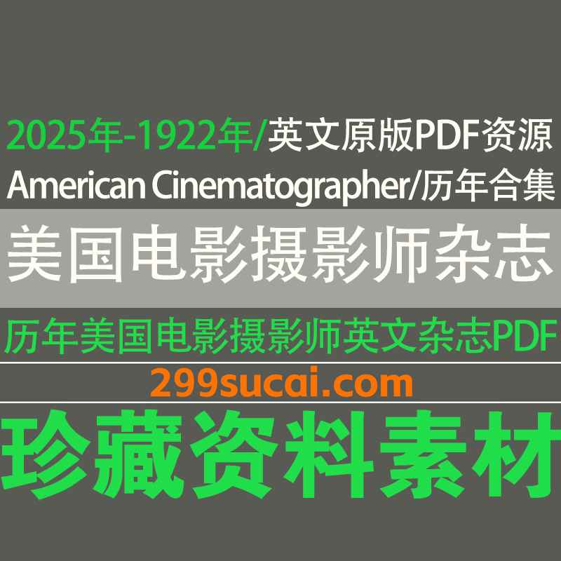 1922年-2025年历年美国电影摄影师杂志《American Cinematographer》英文原版PDF电子版34G网盘资源合集,持续更新