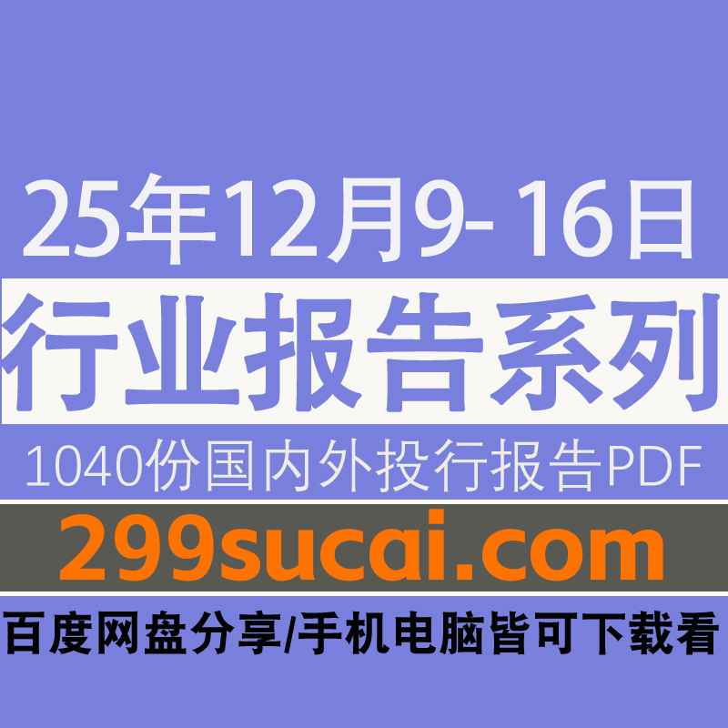 2025年12月9日-16日国内外各行业机构投资研究报告PDF资源网盘合集,包含1040份国内券商报告/国际投行报告/投资研报/行业报告…等
