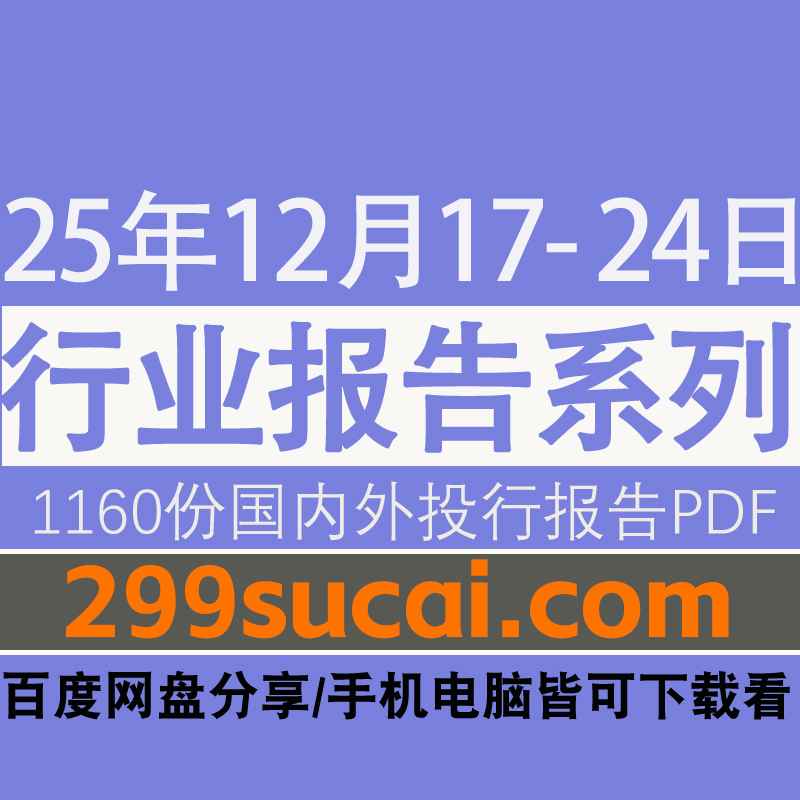 2025年12月17日-24日国内外各行业机构投资研究报告PDF资源网盘合集,包含1160份国内券商报告/国际投行报告/投资研报/行业报告…等