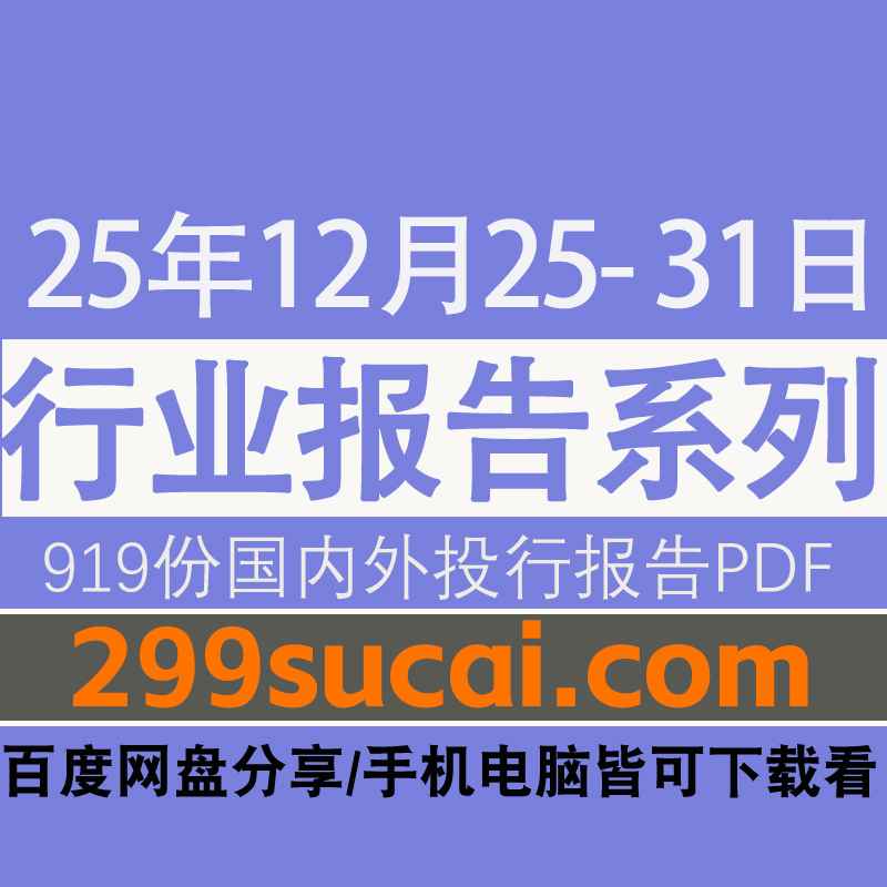 2025年12月25日-31日国内外各行业机构投资研究报告PDF资源网盘合集,包含919份国内券商报告/国际投行报告/投资研报/行业报告…等