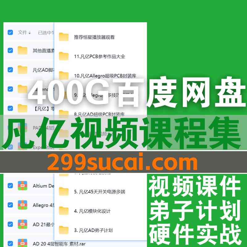400G全新整理凡亿视频课程+电子版课件讲义百度网盘资源合集,包含零基础PCB设计/硬件90天/AD弟子计划/Allegro教程…等
