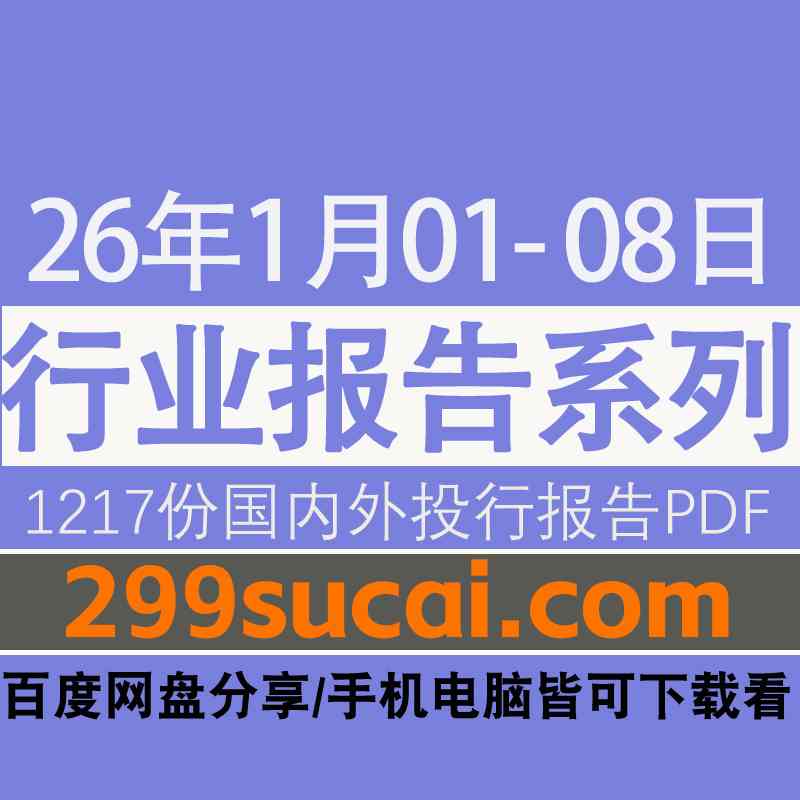 2026年1月01日-08日国内外各行业机构投资研究报告PDF资源网盘合集,包含1217份国内券商报告/国际投行报告/投资研报/行业报告…等