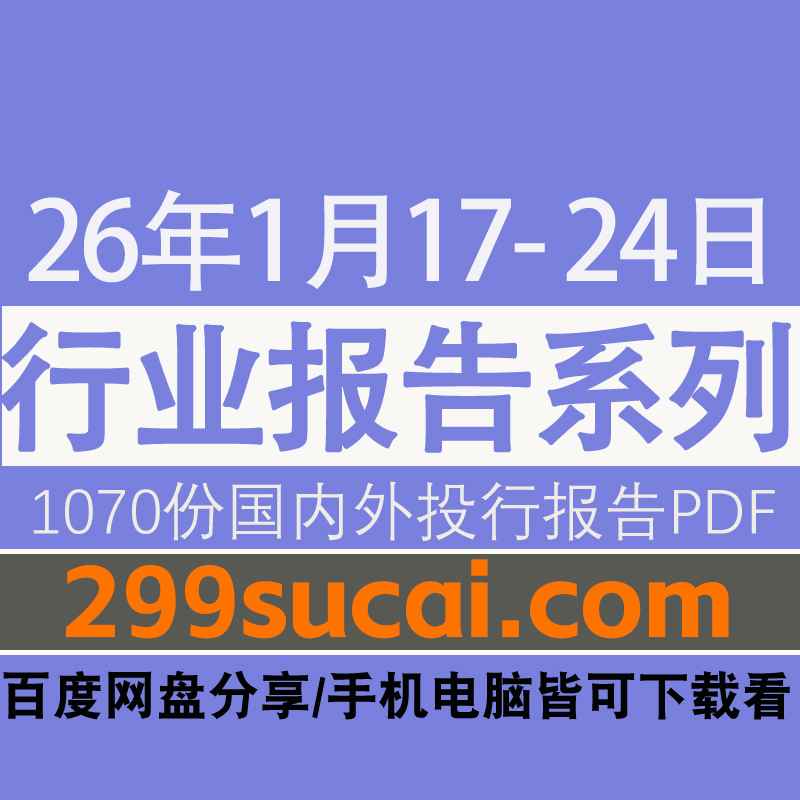 2026年1月17日-24日国内外各行业机构投资研究报告PDF资源网盘合集,包含1070份国内券商报告/国际投行报告/投资研报/行业报告…等