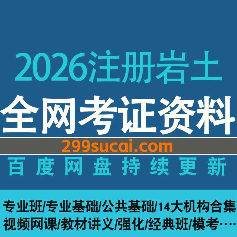 2026年注册岩土工程师考试各大机构网课视频+PDF电子版讲义课件网盘资源合集,包含注册岩土专业班/公共专业基础/入门真题精讲…等