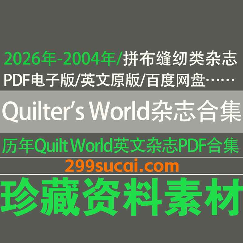 2004年-2026年历年国外拼布缝纫杂志《Quilter’s World》英文原版PDF电子版6.3G网盘资源合集,共129份+,持续更新中……
