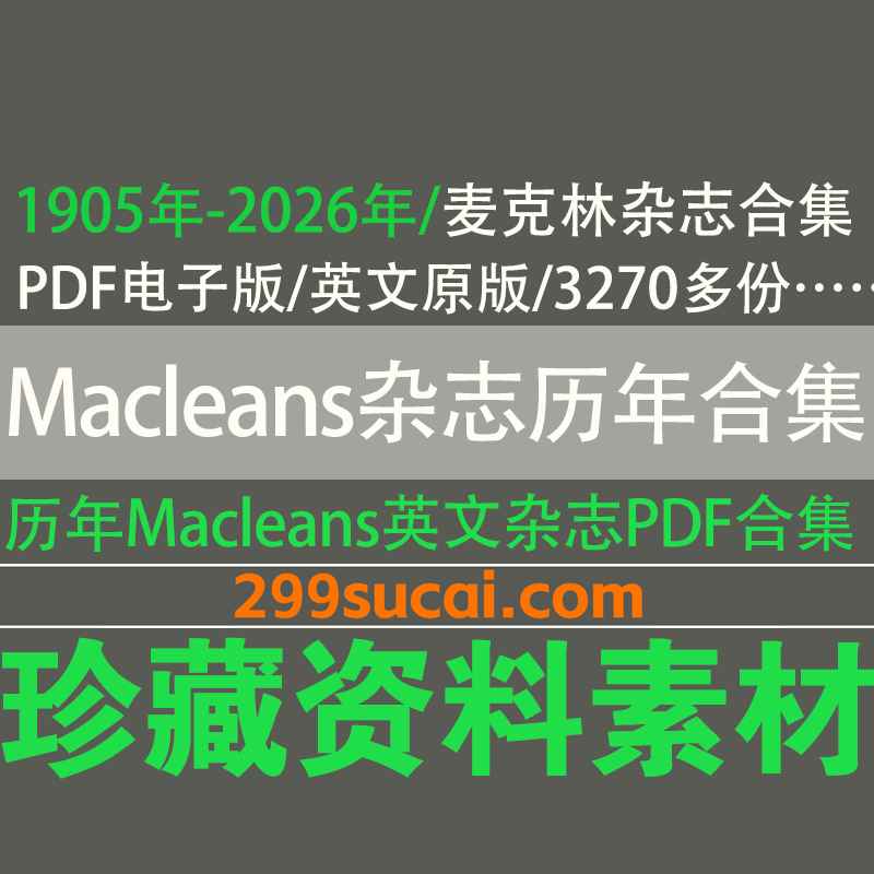 1905年-2026年历年加拿大新闻周刊《Maclean’s》麦克林杂志英文原版PDF电子版16G网盘资源合集,共3270多份,持续更新中