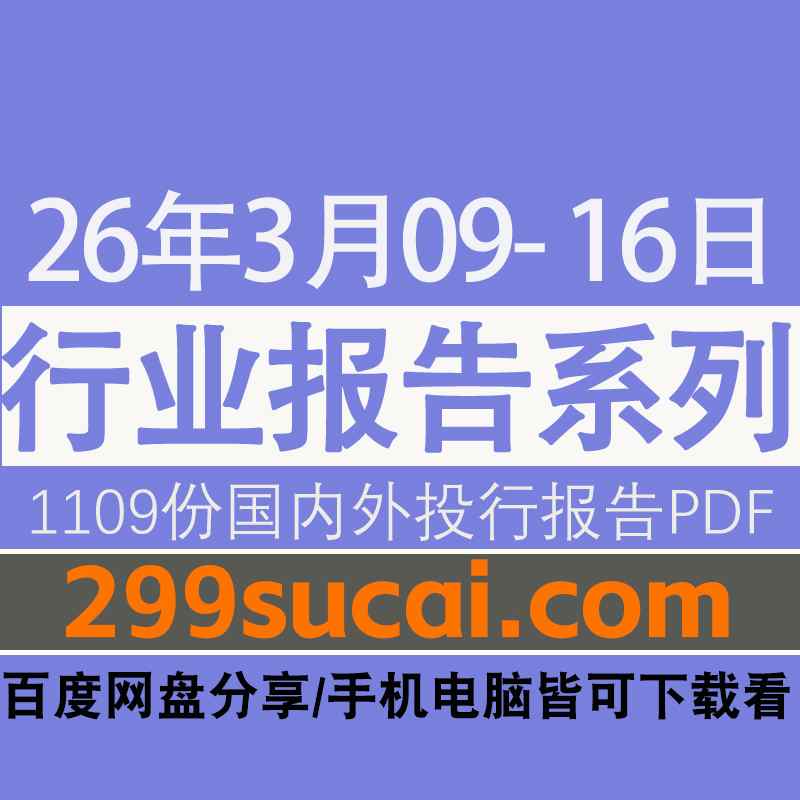 2026年3月9日-16日国内外各行业机构投资研究报告PDF资源网盘合集,包含1109份国内券商报告/国际投行报告/投资研报/行业报告…等
