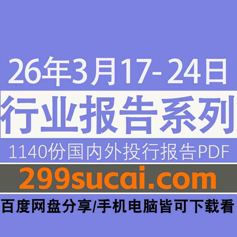 2026年3月17日-24日国内外各行业机构投资研究报告PDF资源网盘合集,包含1140份国内券商报告/国际投行报告/投资研报/行业报告…等