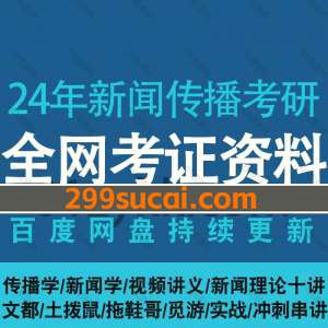 2024年新闻与传播专业考研网课学习视频(5大平台)+PDF教材讲义百度网盘资源合集,包含传播学/新闻学/中新史/外新史/基础精讲/冲刺刷题…等